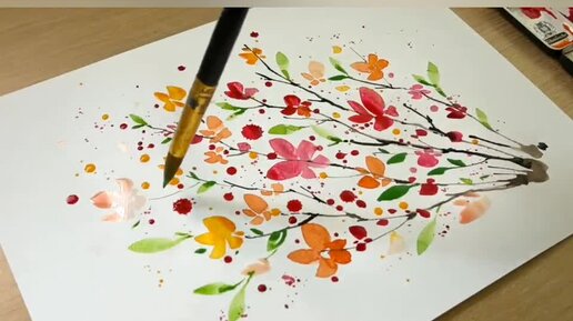 Арт-рисунок.Очень лёгкий способ рисования брызгами. Пошаговая техника рисования 🎨 акварелью для начинающих