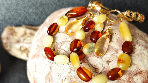 Серьги с янтарем в европейском стиле. Мастер класс.
