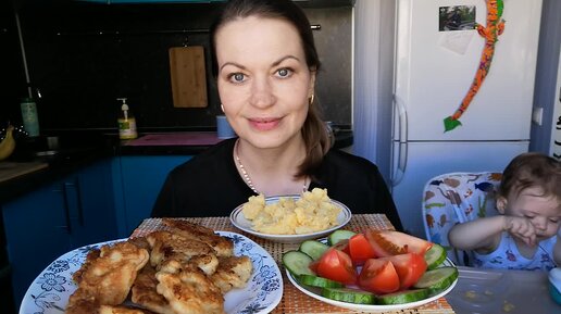 МУКБАНГ ЖАРЕНАЯ РЫБА В КЛЯРЕ/НА ГАРНИР КУКУРУЗНАЯ КАША/ОВОЩИ/MUKBANG