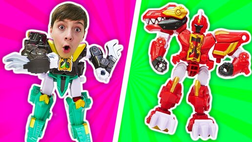 Роботы трансформеры Супер 10 Ректор и Тиранус — схватка за Суперкамень! Игрушки для мальчиков