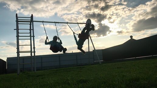 Двойняшки на качелях.