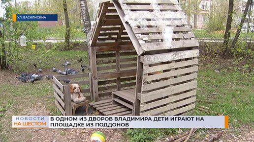 В одном из дворов Владимира дети играют на площадке из поддонов