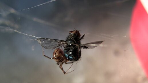 Паук шокирующе убивает муху на Ваших глазах! Заснят на камеру пир пауков