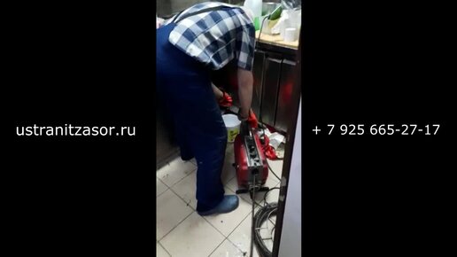 Устранение засора в канализации. Место -кафе Якитория, метод- электромеханическая прочистка с помощью Ротенбергер 650