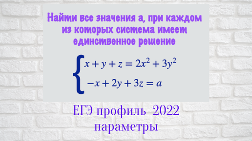 Параметры ЕГЭ, профиль. Система из двух уравнений с тремя переменными и единственным решением.
