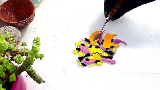 Я набрызгала акриловыми красками на стекло и поработав мастихином получилась абстрактная картина.