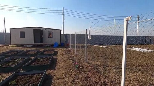 Дача в апреле. Убрали укрытие с саженцев, обрезали старую листву у клубники. Взошел чеснок.