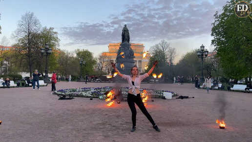 Девушка соло танцует с огнем – красивое и эффектное фаер-шоу под открытым небом