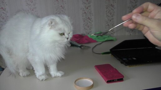 Кормим кошку Касю мороженым