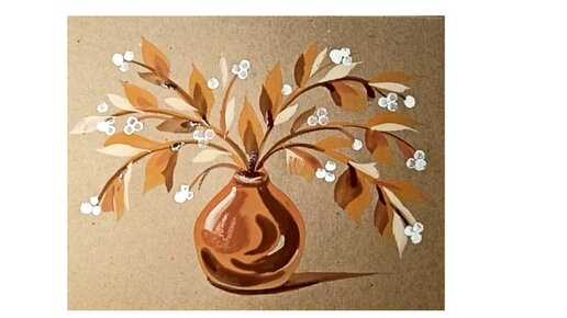 Букет в коричневой вазе. Рисунок гуашью на крафтовой бумаге.