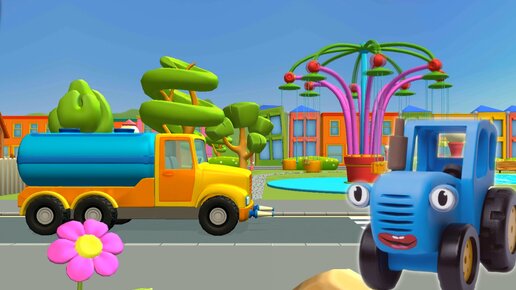 Поливальная машина. Синий трактор игроман и грузовичок Лева. Игровой мультик для малышей детей