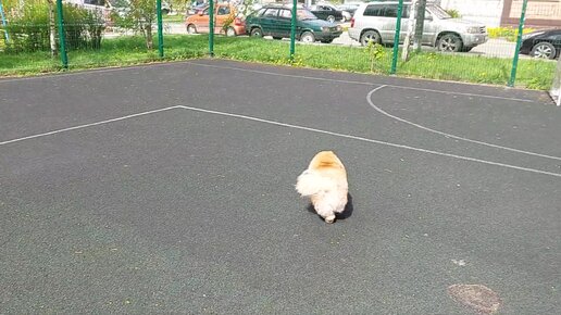 Утренняя пробежка шпица. Люк сбрасывает вес, который набрал зимой
