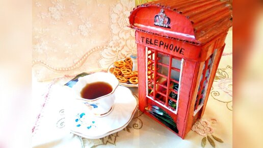 Как сделать чайный домик из коробки. Чайный домик_Английская телефонная будка. Поделки из картона