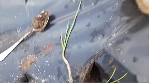 Мой огород. Посадка рассады лука эксибишен и штуттгартер на плёнку.