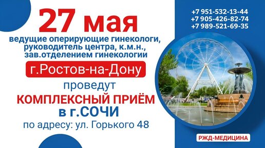 Комплексный прием гинекологов г.Ростова-на-Дону 27 мая в г.Сочи. Гинекология РЖД Медицина Ростов
