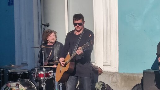 Улицы Санкт-Петербурга. Выступление музыкантов с кавер-версией у метро Гостиный двор. Невский проспект.