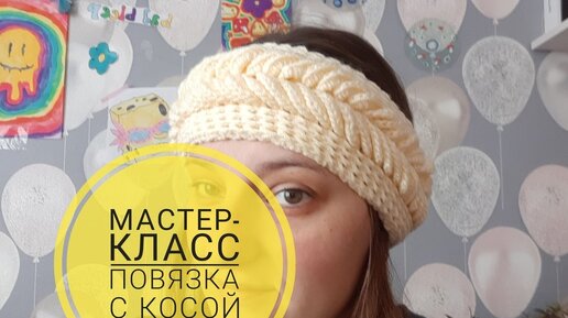 ПОВЯЗКА КРЮЧКОМ С КОСОЙ НА ГОЛОВУ