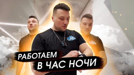 Показываю и рассказываю, какие потолки выбирают заказчики. А на кухне выложили световыми линиями наш лого)))