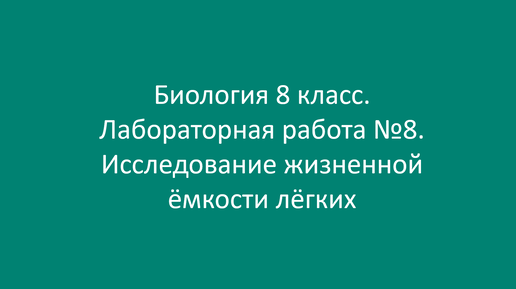 Биология 8 класс. Лабораторная работа №8. Исследование жизненной ёмкости лёгких