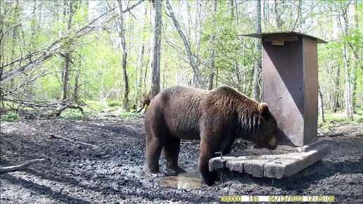14.05.22 Мишка на кормушку днем стал ходить, ночью кабаны все минируют, так ходит по светлому, чтоб на мине не поскользнутся.