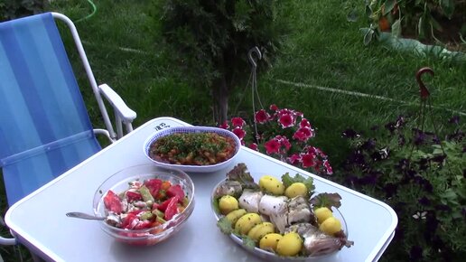 Судак малосольный с молодым картофелем. Закуска из кабачков.