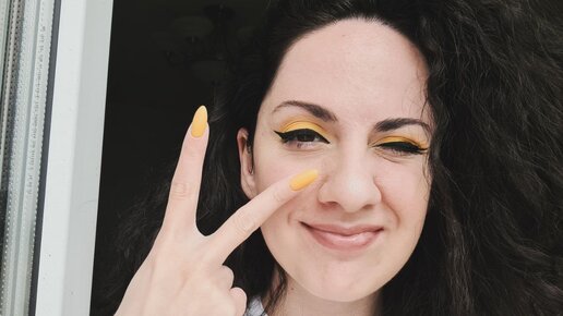 Яркий макияж на лето 2022 с желтыми тенями.