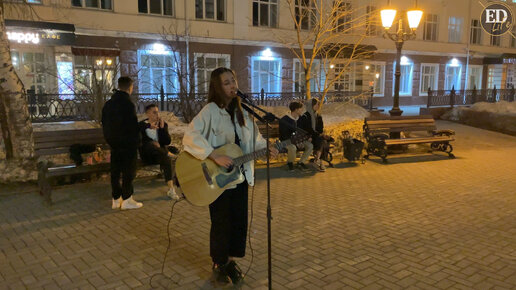 Девушка спела и сыграла в центре Перми песню «Как жаль» группы «Браво» – кавер-версия популярной композиции прошлого