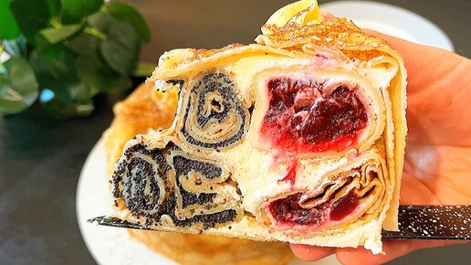 Блинный торт с начинками! Не реально вкусный сочетание вишни с маком!