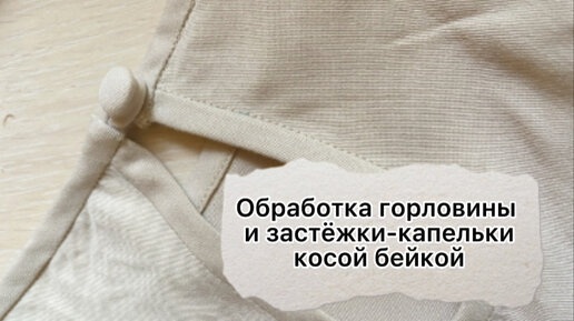 Как обработать и закрыть горловину косой бейкой. Обработка застёжки-капли косой бейкой. Навесная петля. Пошаговое видео.