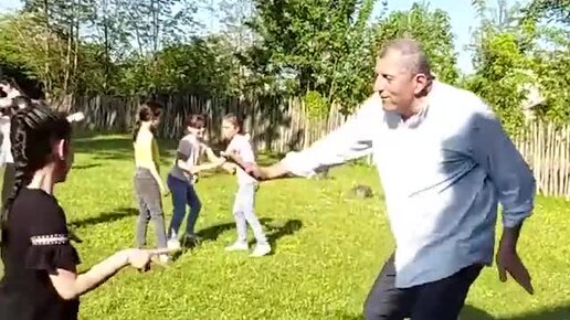 Директор Озургетского фольклорного центра Авто Сургуладзе с детьми