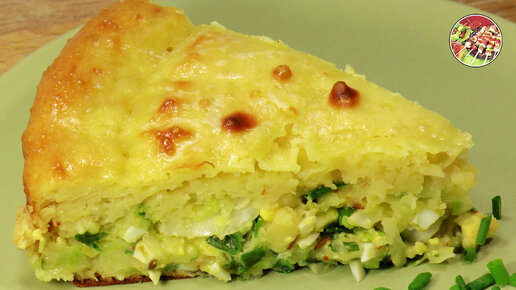 Ленивый заливной пирог с капустой, яйцом и зелёным луком на кефирном тесте | Просто и очень вкусно!