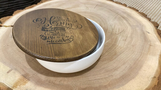 Крышка для стеклянной емкости, банки с вживлением рисунка на дерево