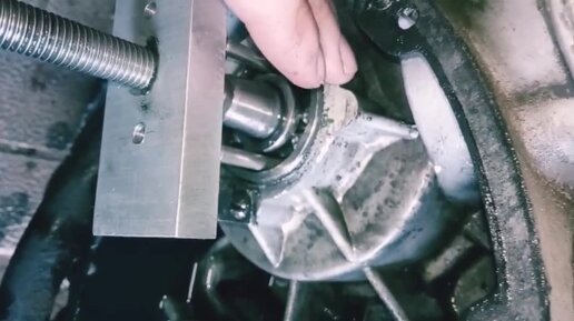 Выпрессовка подшипника коленвала самодельным съемником для замены сальника. Без разборки двигателя!