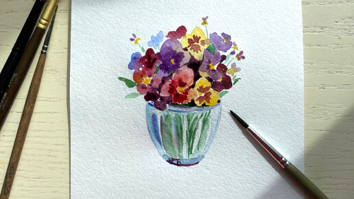 Анютины глазки акварелью. Поэтапное рисование для начинающих