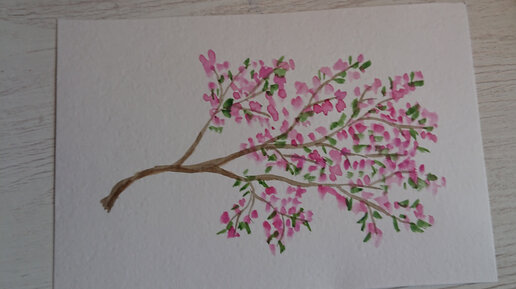 Ветка 🌿 сакуры акварелью пошаговый урок