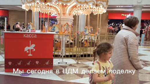 Дочка на мастер-классе в ЦДМ в Москве делает поделку. Скрапбукинг