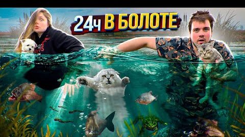 24 ЧАСА В БОЛОТЕ С КОТОМ И СОБАКОЙ | СПАСЛИ СПЯЩУЮ ЛЯГУШКУ И ПИЯВОК