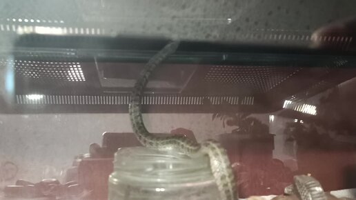 Змейка ползает по потолку контейнера, хочет сбежать