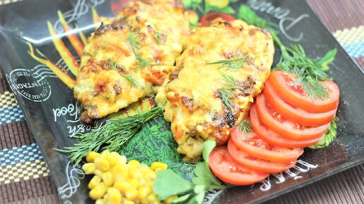 Куриное филе с сырно-помидорной шапочкой🍗👍Приятного просмотра.