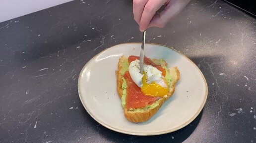 Круассан с авокадо, красной рыбой и яйцом пашот