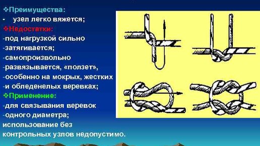 Узлы применяемые в туризме. Прямой (рифовый) узел. Как вязать.