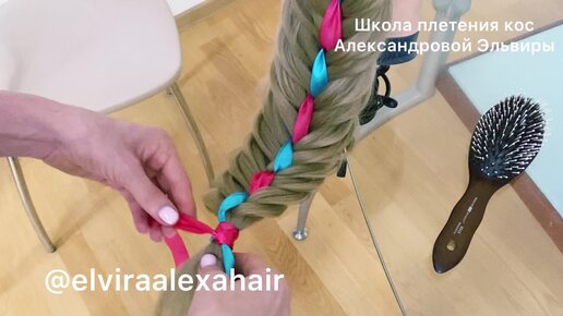 Как заплести Рыбий хвост с лентой. ПОДРОБНОЕ видео.