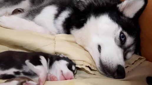 Щенки Хаски __ ОНА ЕЛА и УСНУЛА МЕРТВЫМ СНОМ __ ПЕРВЫЙ ПРИКОРМ