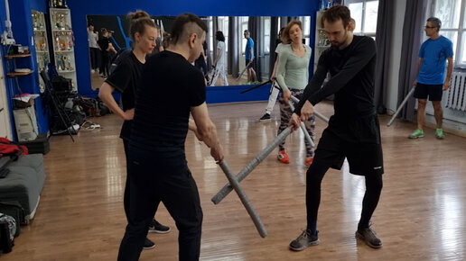 Урок фехтования катаной. Кендзюцу. Прием с катаной: первая защита и ответ в нижний сектор с оппозицией в соединении