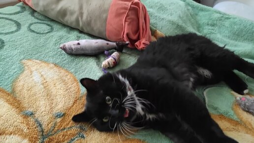 Любимые игрушки кота Маси. Кот любит свои игрушки трепать. #курильскийбобтейл #котята #cat #кот #рыбкадлякота #мятнаяигрушка #мята #игры