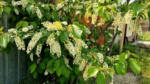 Показываю, что растет у жителей на юге у дома. Цветет черемуха
