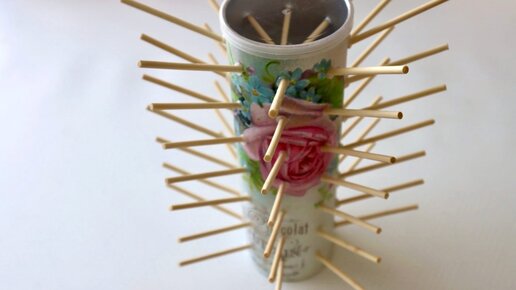 Купила садовые палочки и взяла коробку из-под чипсов. Смастерила полезную вещь из этого добра