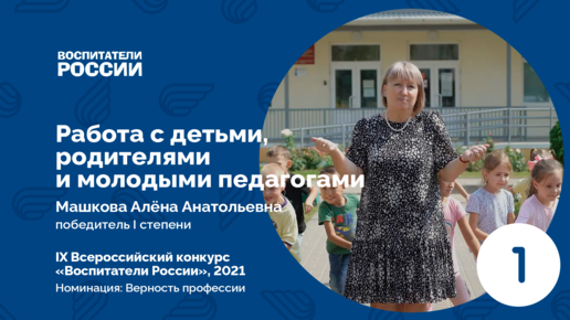 Работа с детьми, родителями и молодыми педагогами — победитель I степени · IX Всероссийский конкурс «Воспитатели России», 2021