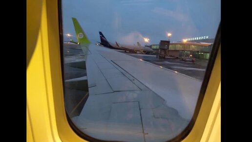 Взлет самолёта Boeing 737, вид из иллюминатора