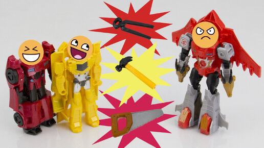 Роботы Трансформеры Sideswipe и Bumblebee ремонтируют Twinferno. Мультики для мальчиков.
